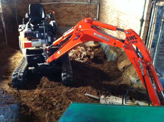 Britton Excavations has 2 mini excavators, a 1.8 Tonne Kubota, and a U17-3 Kubota with zero swing. They are best used for tight access spaces. The tracks can be brought in to under 1 metre, and the canopy can be removed to enter smaller spaces. They have a rockbreaker, sieve bucket, ripper, trenching buckets and augers.