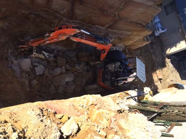 The 5 tonne Hitachi Excavator is the strongest of the small excavators. It can fit into most residential properties, but still has power and reach to excavate bigger sites. Attachments include a rock breaker, rock saw, sieve bucket, ripper, grabs, and various augers and trenching buckets.